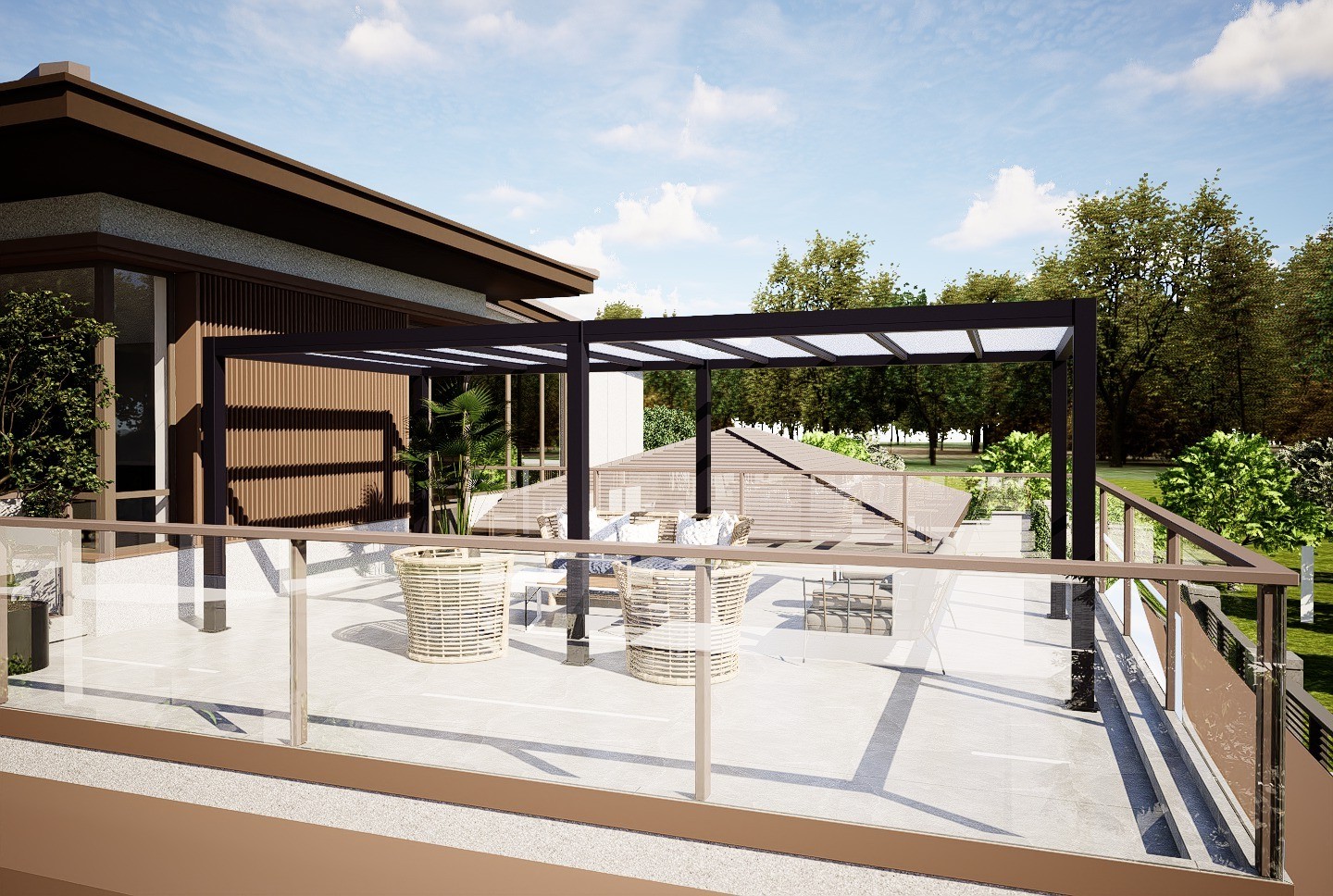-Możliwość domontowania dodatkowych elementów takich jak szklane ściany przesuwne, żaluzje, rolety ZIP